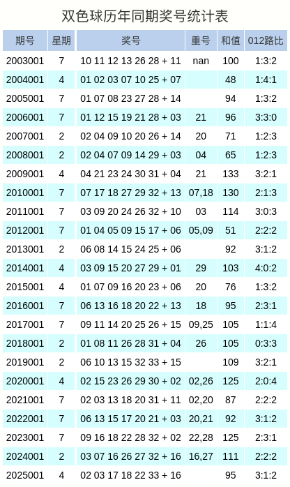 蓝球分析:去年同期开出蓝球号码16,属于1路号码,在历史同期数据中蓝球号码的012路比为8:9:6,本期预测开出0路号码:03。