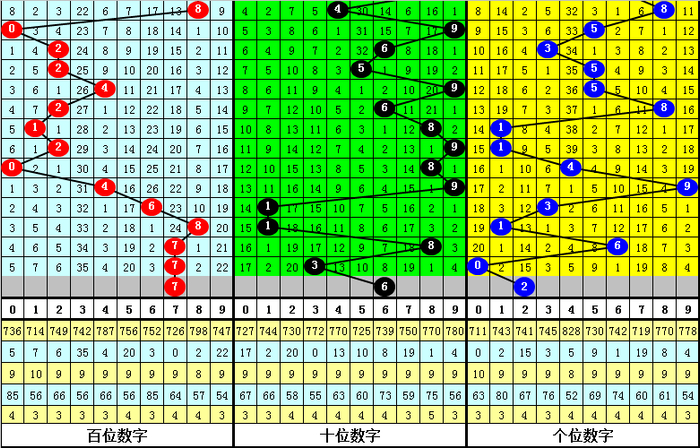 上期第一位开出奖号:7,重复开出,表现较热,最近10期该位热码表现非常低迷,本期适当关注该位热码逐渐回补,参考号码7。