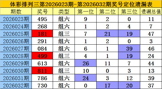 开奖回顾:排列三第2026032期奖号为:730,各位号码遗漏值分别为0、17、20,遗漏总值为37。