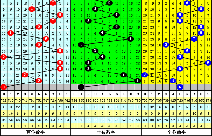 另外,在组选0-9的号码分布中,号码2、7、8表现最冷,开出9次;号码5走势最热,开出了21次。本期预计号码组2578中落号,参考号码58。